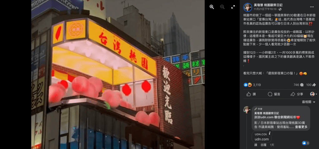最近社群上許多人在討論在新宿車站所露出 3D 廣告看版,會突然被提起是因為桃園的市議員覺得廣告看版設計的很醜,在臉書貼文後引起討論。當然許多人會隨之附和,認為這是很醜的設計,或是「華國美學」等等。